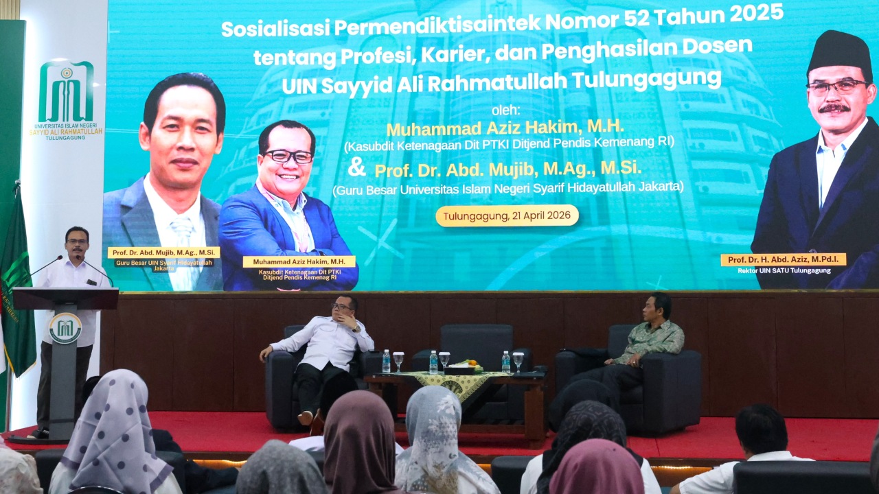 Tulungagung — Universitas Islam Negeri Sayyid Ali Rahmatullah (UIN SATU) Tulungagung terus berkomitmen meningkatkan kualitas sumber daya manusia, khususnya tenaga pendidik. Hal ini diwujudkan melalui kegiatan Pembinaan dan Pengembangan Karier dan Profesi Dosen yang digelar pada Selasa (21/04/2026) bertempat di Aula Gedung Prajnaparamita Lantai 5.