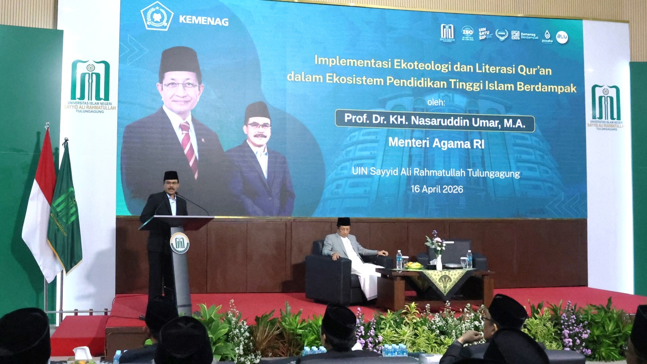 Tulungagung — Kehadiran Menteri Agama Republik Indonesia dalam kunjungan ke UIN Sayyid Ali Rahmatullah Tulungagung menjadi momentum penting dalam penguatan arah pengembangan kampus berbasis integrasi keilmuan dan nilai keislaman. Agenda yang dipusatkan di Aula Prajnaparamita pada Kamis (16/04/2026) tersebut dihadiri oleh jajaran pimpinan universitas, dosen, tenaga kependidikan, mahasiswa, serta tamu undangan.